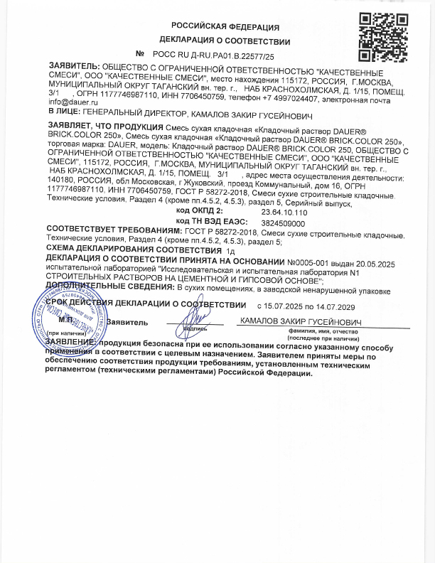 Оттенок шва затвердевшего материала может изменяться в зависимости от погодных условий, способа применения на строительном объекте, а также от способа формирования шва. Для точного выбора цвета раствора, рекомендуем сделать пробную кладку.