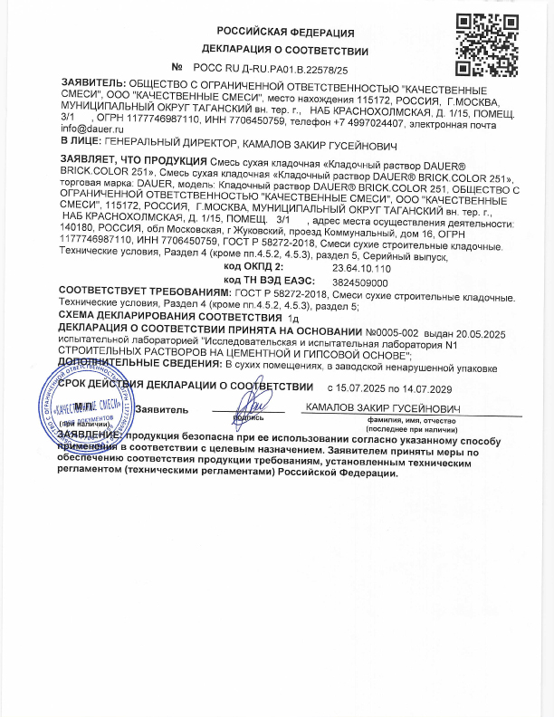 Dauer BRICK.COLOR 251 цветная кладочная смесь армированная